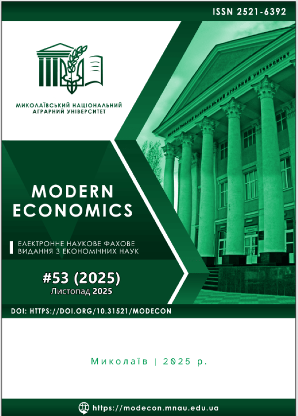 Матеріали, подані для публікації в Електронному науковому фаховому виданні з економіки «Modern Economics», повинні пройти анонімне рецензування, перевірку на плагіат та бути рекомендовані Вченою радою Миколаївського національного аграрного університету перед публікацією.
